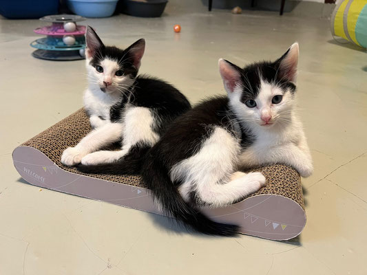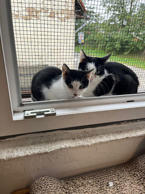 Die beiden Buben sind 11 Jahre alt, gesund, verschmust und Kinder gewöhnt. Tiger ist auch mit Hunden verträglich. Findus ist etwas scheuer.